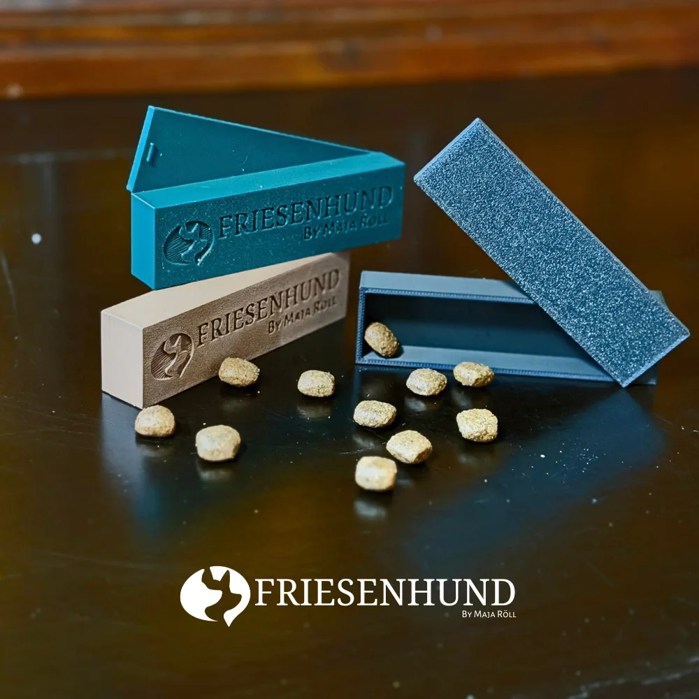 Du kannst den Fährtenübungsgegenstand mit verschiedenen Belohnungen befüllen, je nachdem, was für deinen Hund gut funktioniert, wie zum Beispiel: