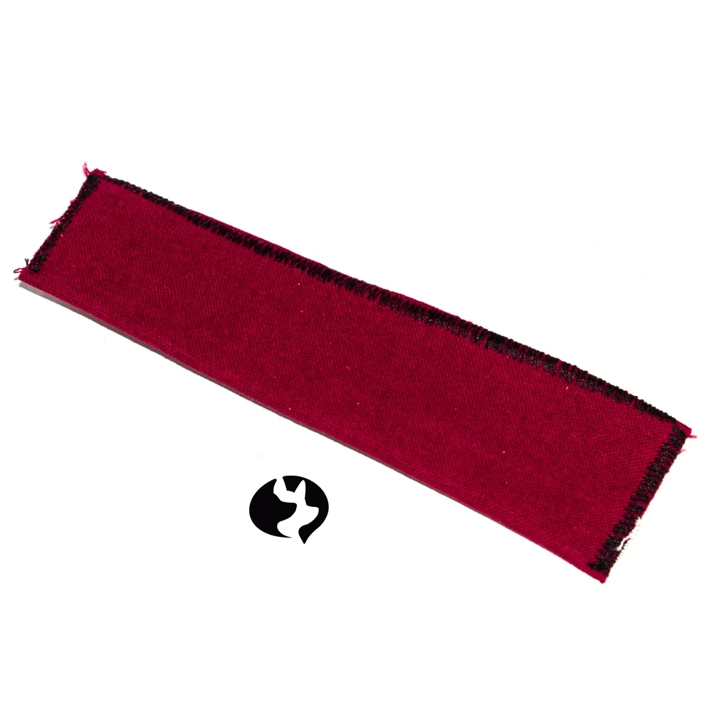 Der Stoff-Gegenstand in weinroter Baumwolle ist ca. 10cm lang, ca. 2,5cm breit und nur 0,25cm dick. Ihn habe ich dir aus robuster Baumwolle in einem warmen, kräftigen Weinrot genäht, so dass er sich nicht allzu deutlich vom Boden abhebt, auf dem du deine Trainingsfährte für deinen Hund legst. Trotzdem hast du die Chance, den Fährtengegenstand vor deinem Hund zu entdecken und die Verweisarbeit deines Hundes sicher zu kontrollieren.